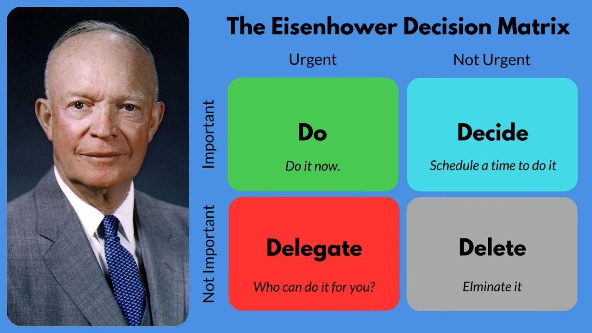 “I have two kinds of problems—the urgent and the important. The urgent are not important, and the important are never urgent." - Dwight D. Eisenhower